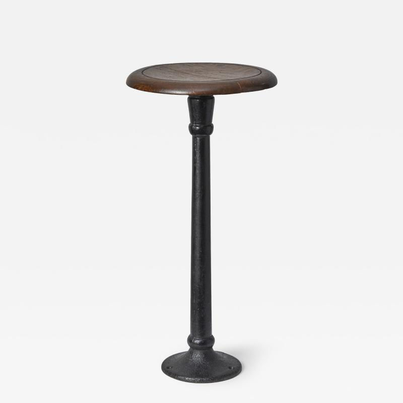 Turn of the century apothecary stools with swiveling oak top and cast iron bases